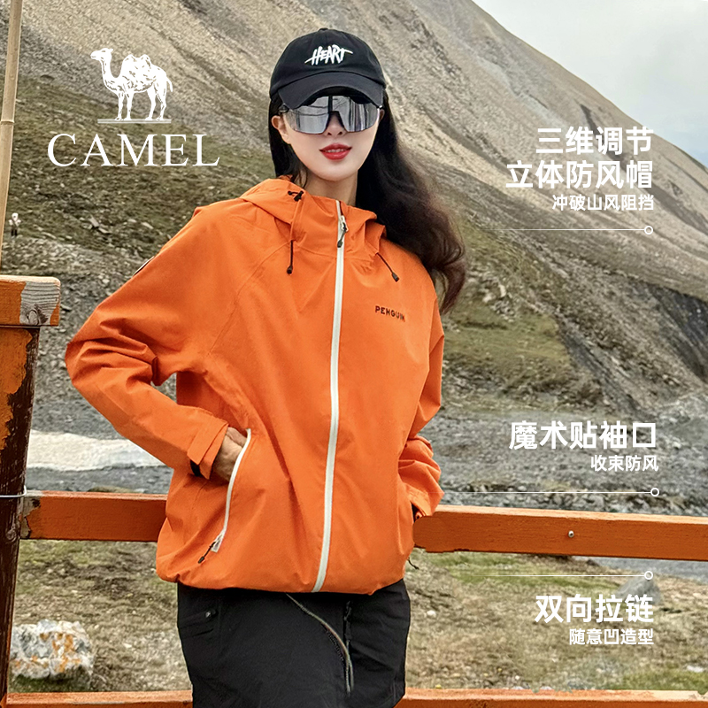 骆驼女装单层冲锋衣2025秋冬新款户外防风防水连帽立领男女款外套