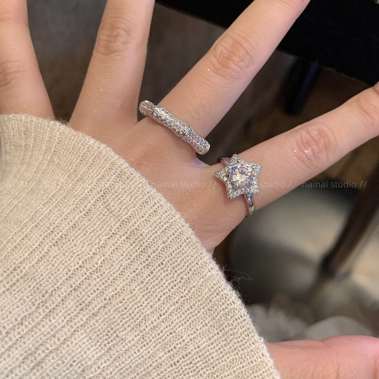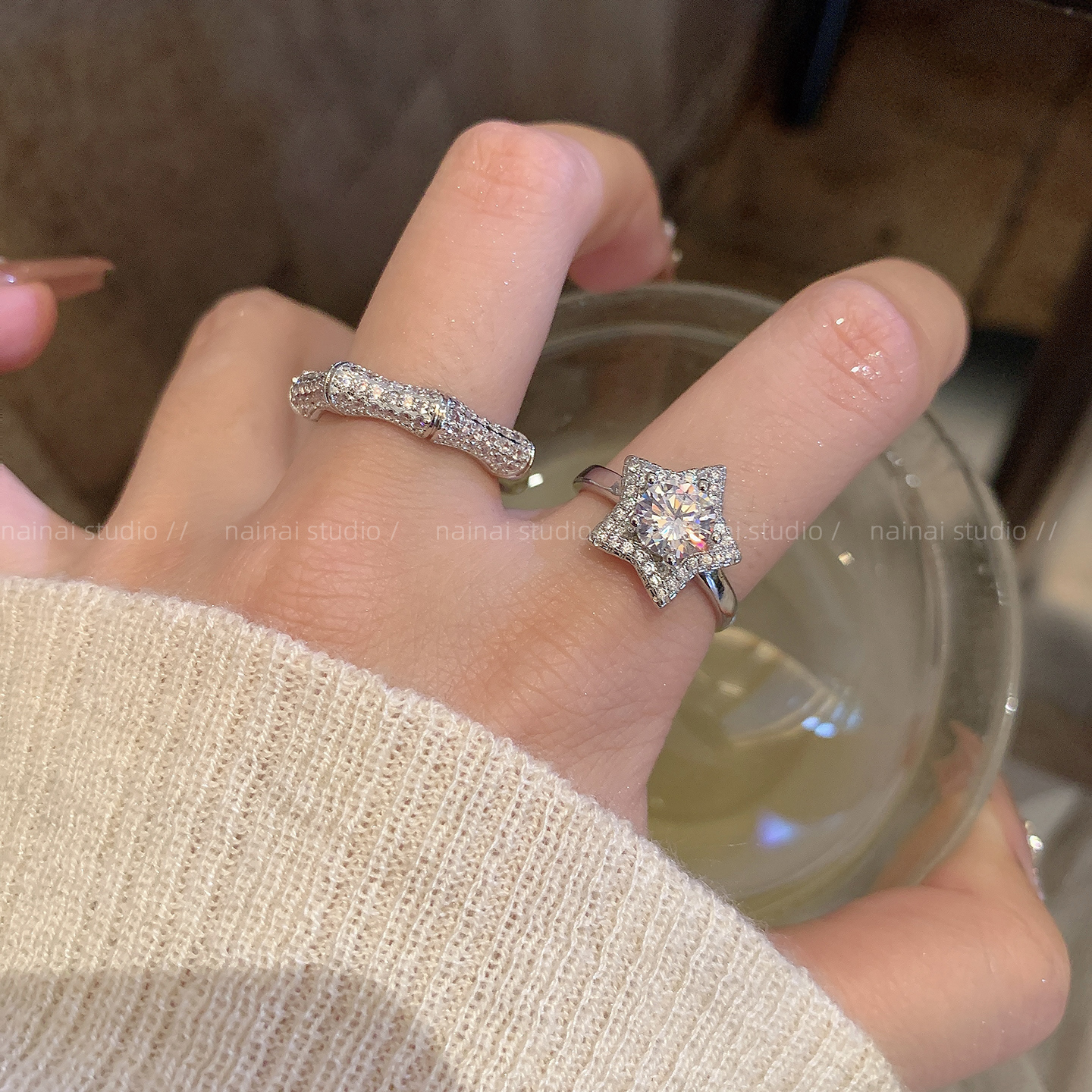 星星竹节戒指~锆石超闪高级感小众设计轻奢食指戒气质百搭指环女A
