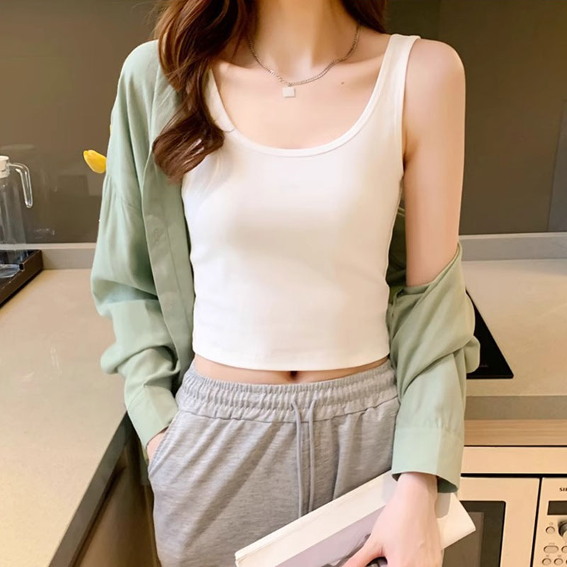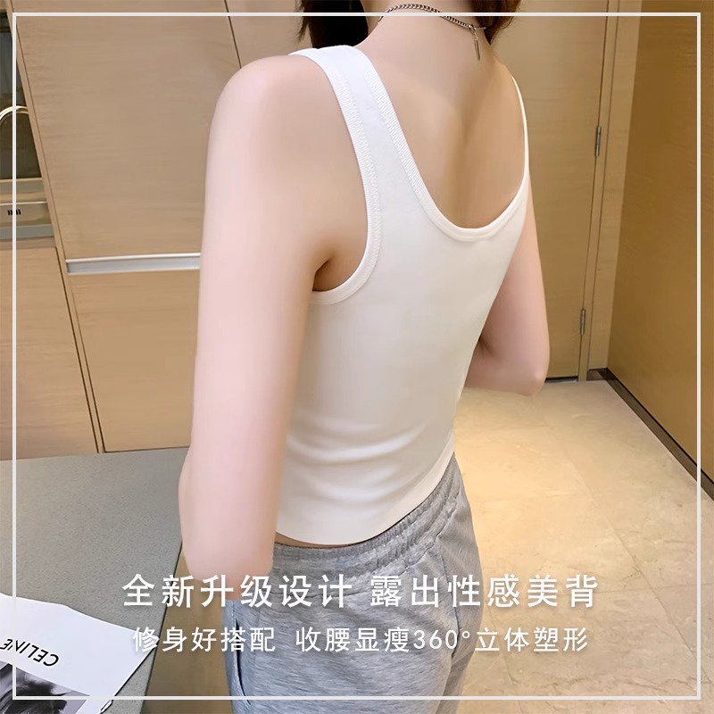 半练纽扣带胸垫夏季背心吊带女外穿内搭打底文胸一体上衣免穿内衣
