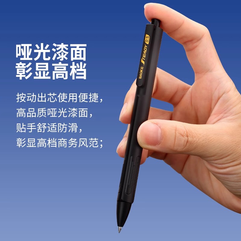 宝克黑珍珠系列按动中性笔黑色0.5/0.7/1.0mm三角杆学生刷题笔