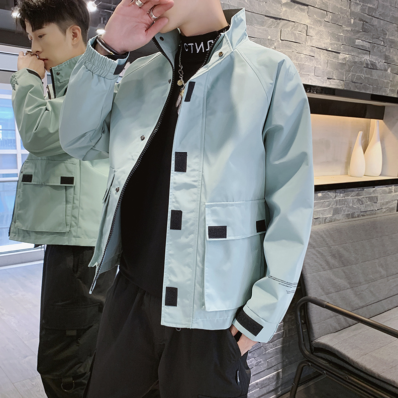 【LYFZ】美式立领教练夹克男秋季纯色复古冲锋衣显肩宽休闲外套男