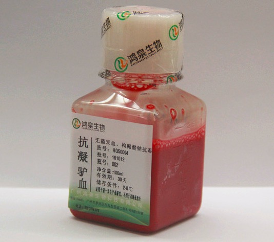 抗凝驴血新鲜无菌鸿泉生物细菌培养血细胞观察科研生化试剂