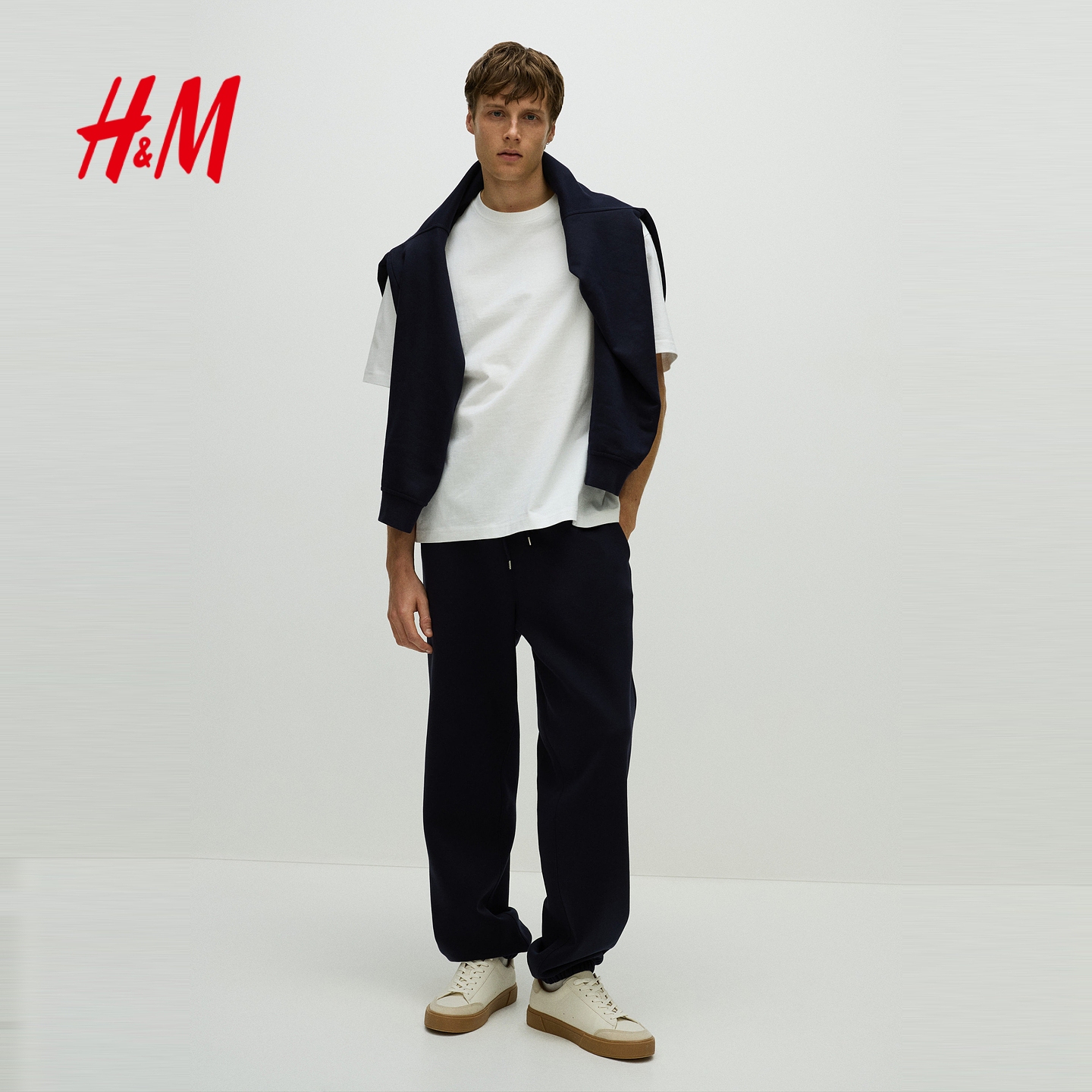 HM男装休闲裤柔软舒适宽松简约运动裤抽绳慢跑束脚长裤1012056