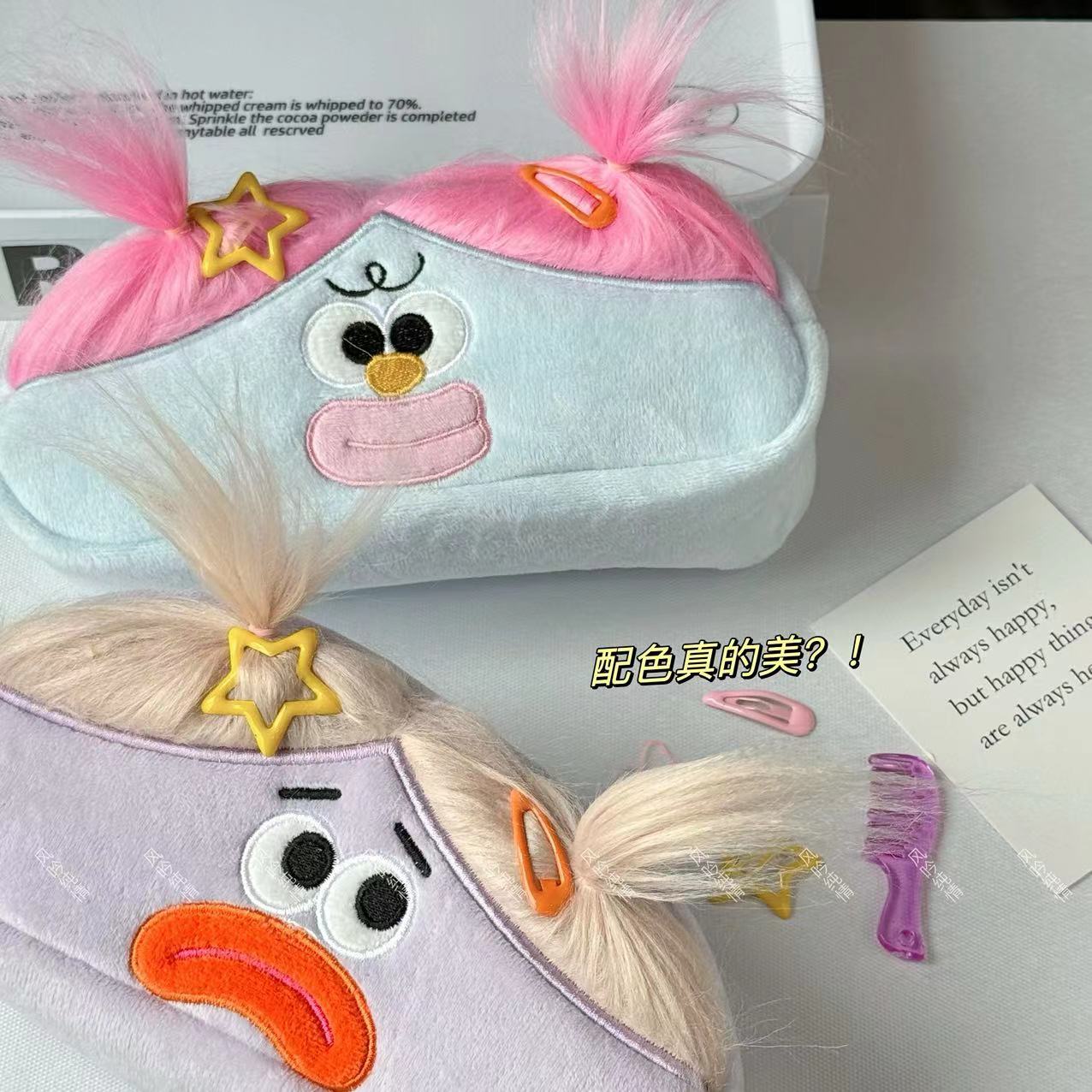 搞怪炸毛笔袋丑萌可爱毛绒大容量铅笔盒女学生创意文具袋收纳包