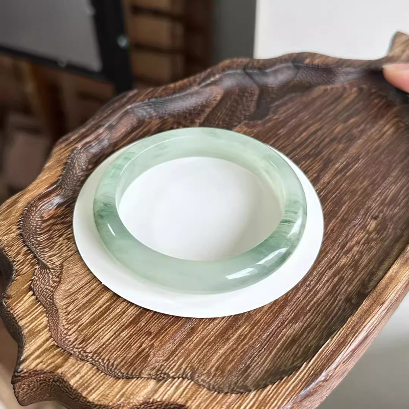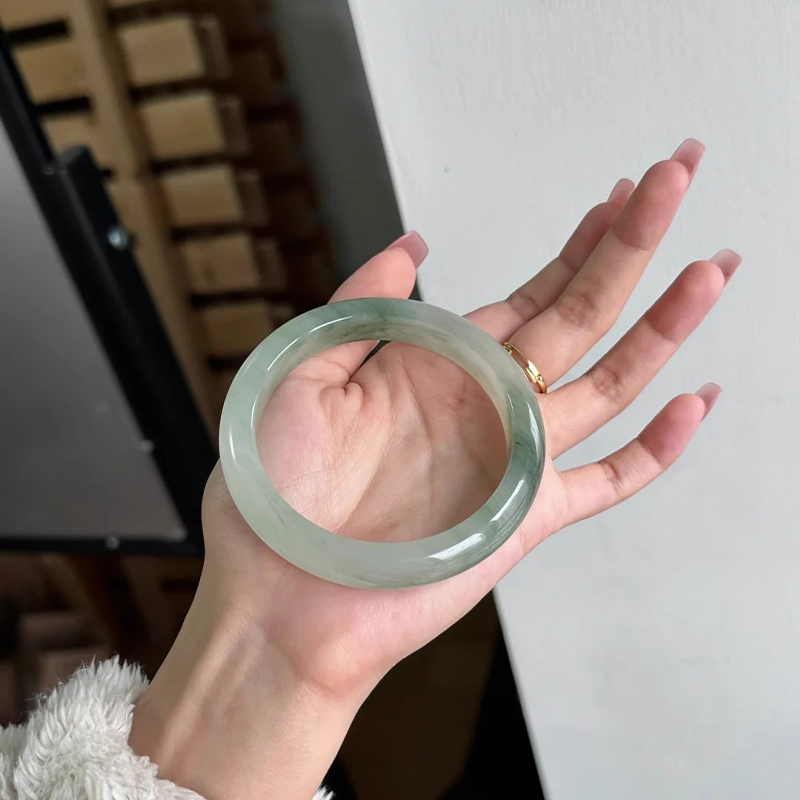 天然新疆天山翠手镯雪翠玉镯女款飘花金丝玉平安镯圆条正品玉镯子