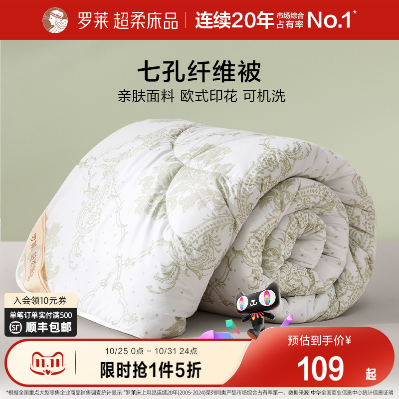 罗莱家纺被子被芯单人透气亲肤柔软七孔纤维被四季被加厚保暖冬被