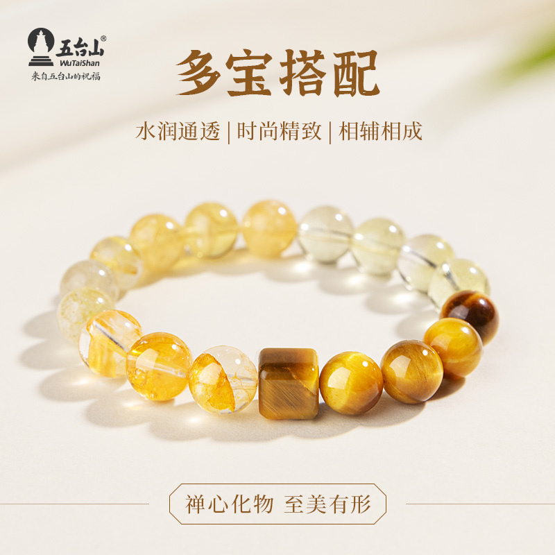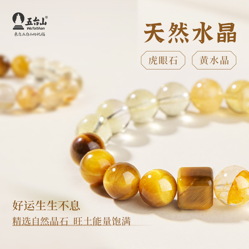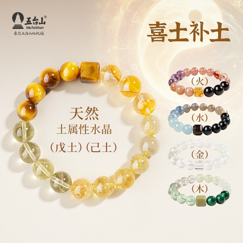 五台山五行平衡补土喜土水晶手串天然黄水晶金发晶招财好运手链
