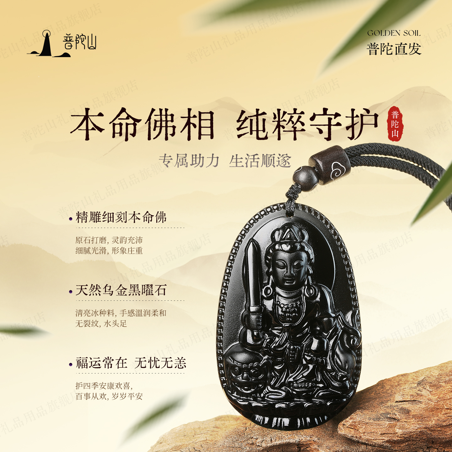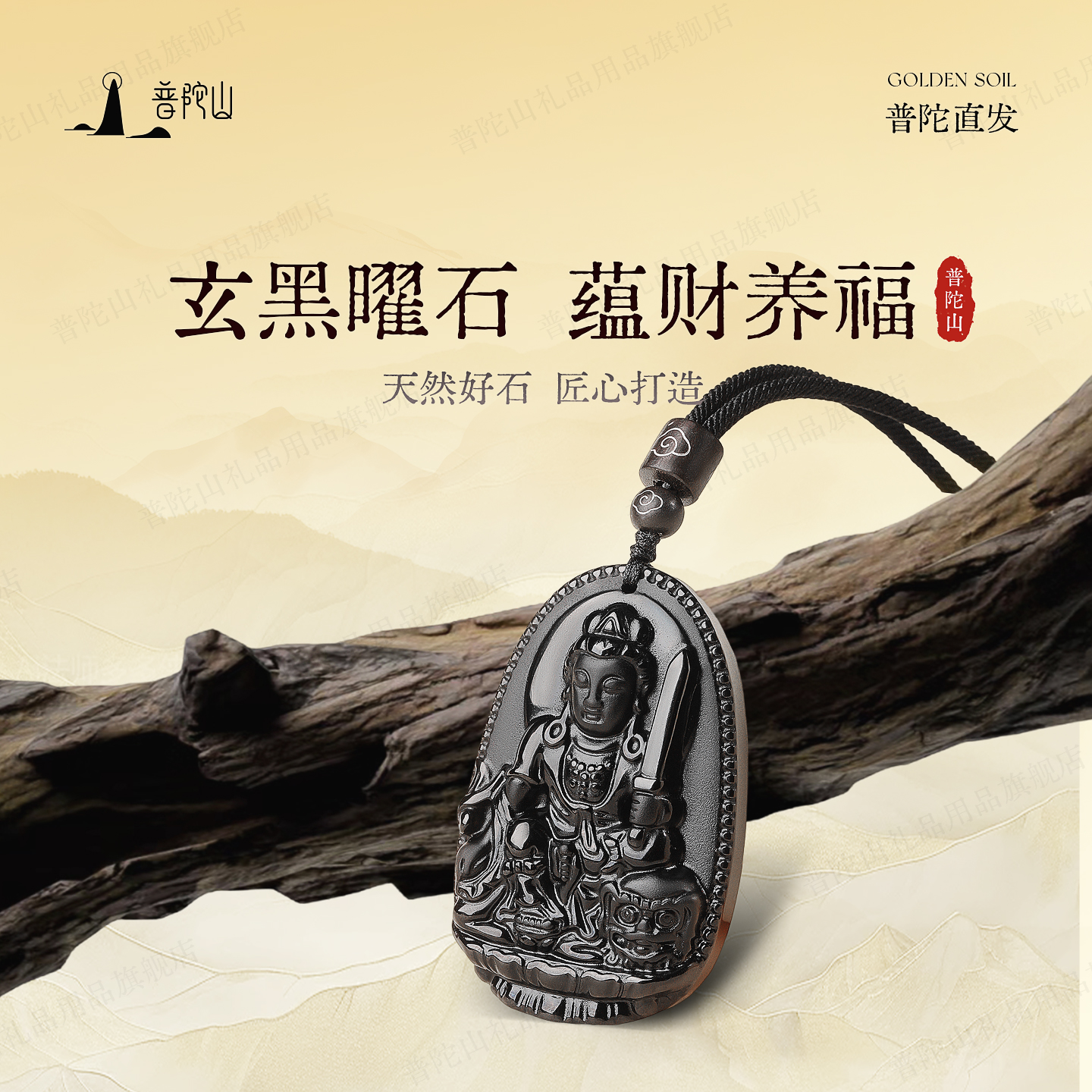 普陀山天然黑曜石本命佛吊坠女士挂绳水晶项链松礼物官方旗舰店