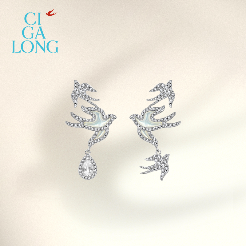 CIGALONG龙梓嘉群燕母贝耳钉项链戒指新品飞燕系列新中式珠宝