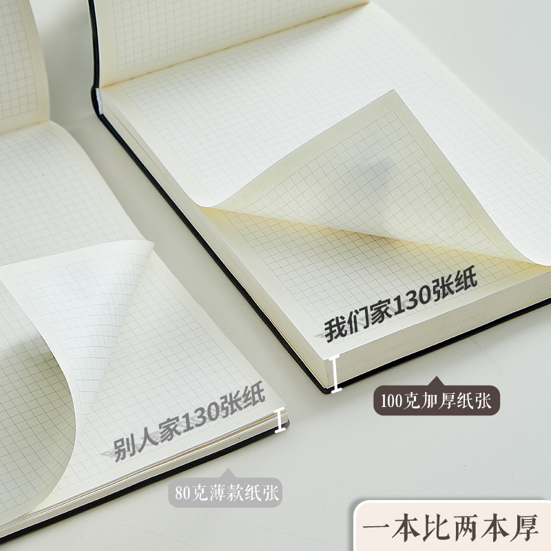 复古牛皮纸笔记本超厚空白本子加厚白纸本草稿本学习可平摊高颜值本记事本日记本a4a5小方格写作本大学生初中