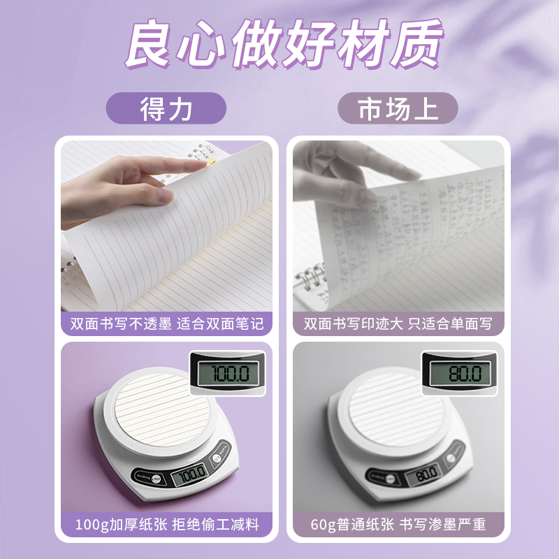 晨光活页本B5横线笔记本子A4方格网格记录本A5多规格可拆卸替芯软壳考研线圈错题本加厚纸张不咯手活页夹高中