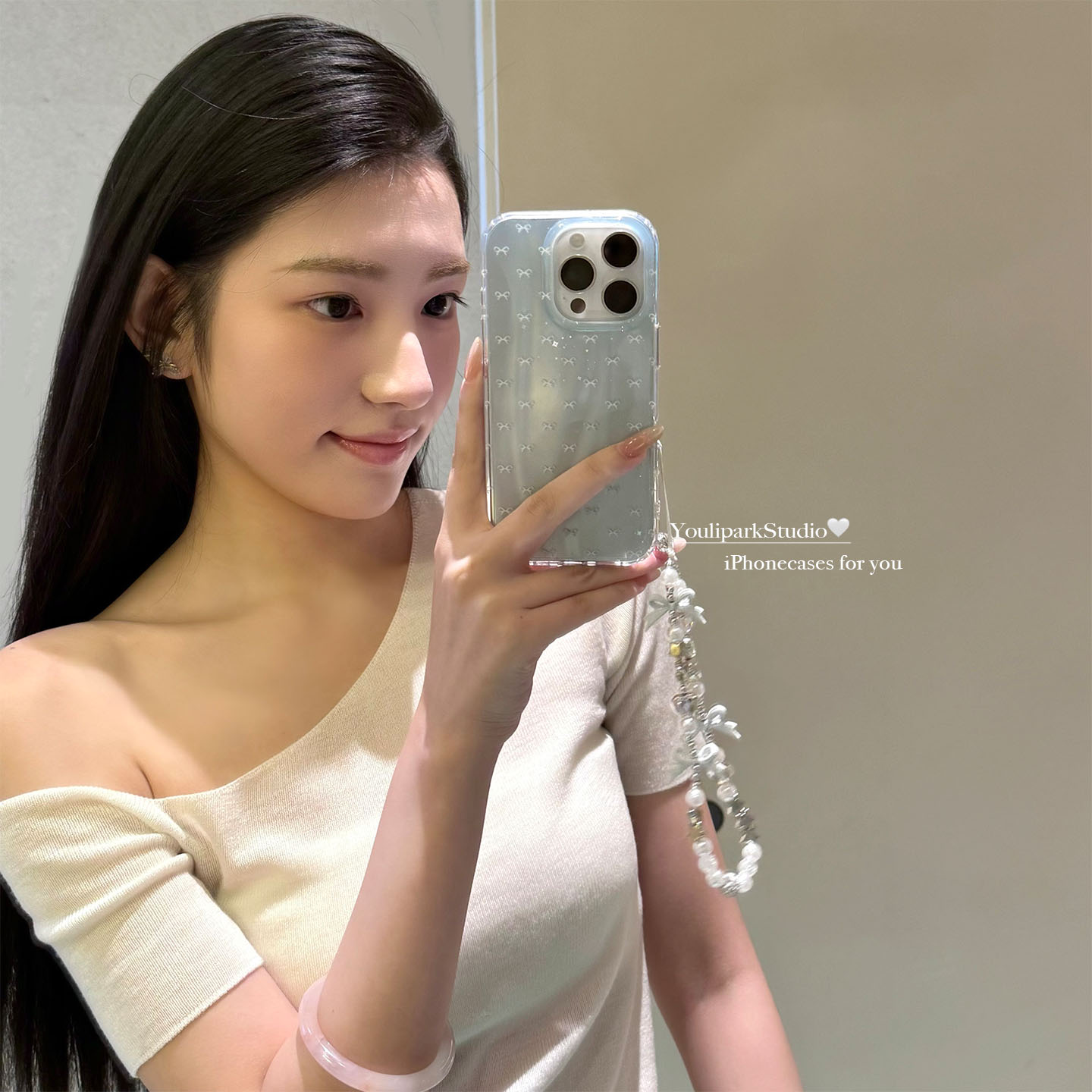 由里公园ins韩系少女温柔慕斯蓝满屏蝴蝶结15适用17pro苹果17ProMax手机壳iPhone16全包17新款14Promax保护套