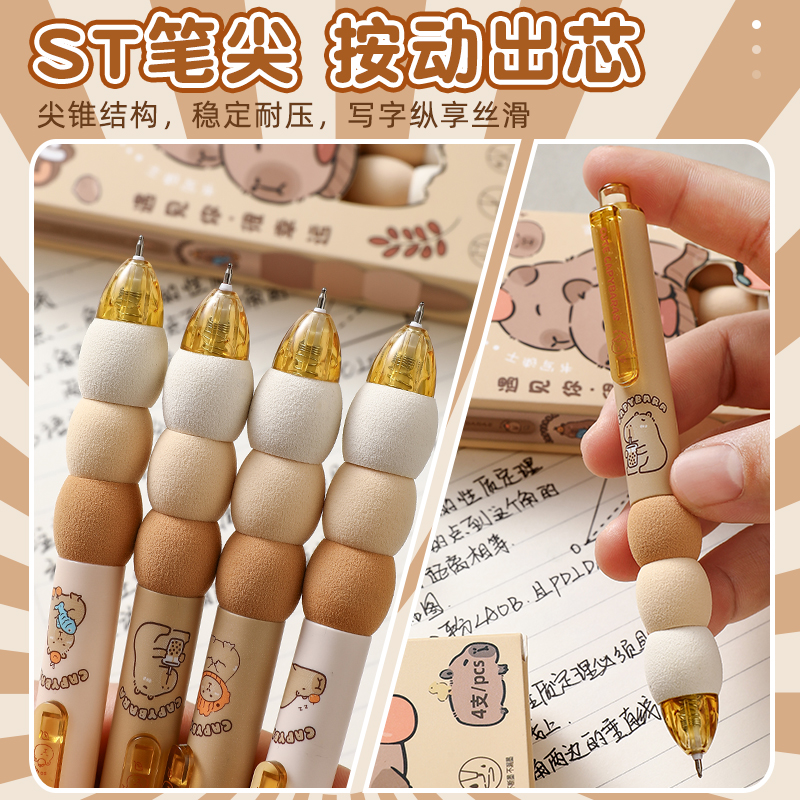 卡皮巴拉超软握防起茧按动中性笔高颜值专用顺滑速干顺滑刷题笔