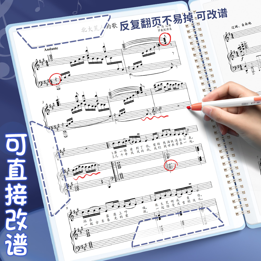 乐谱夹不反光谱夹歌谱琴谱文件夹可插页架子鼓钢琴谱谱子曲谱夹谱本夹收纳翻页内页透明资料夹a4谱夹册展开式