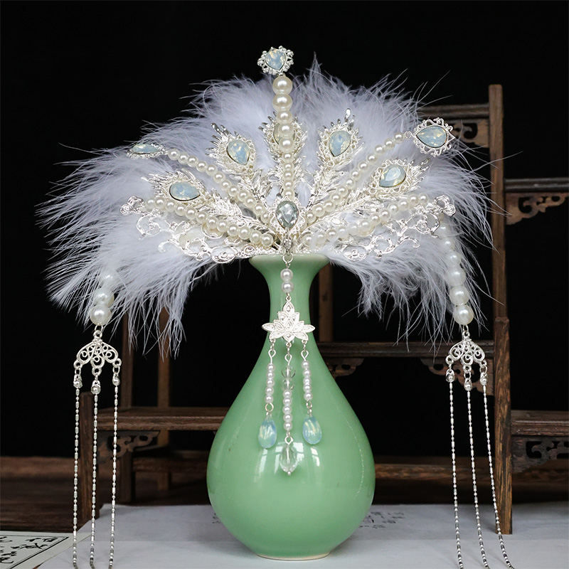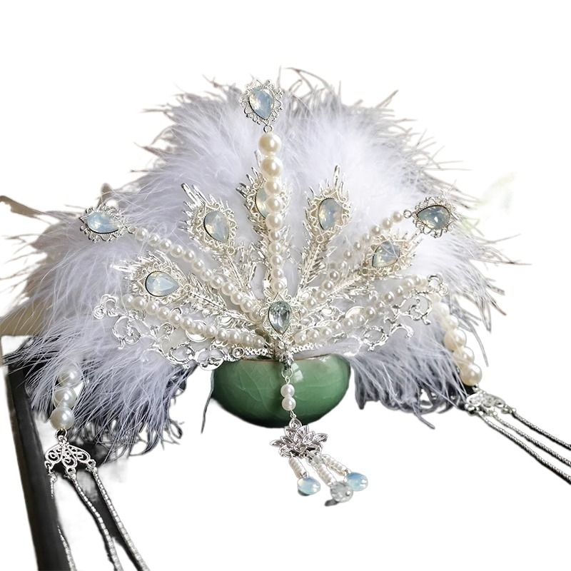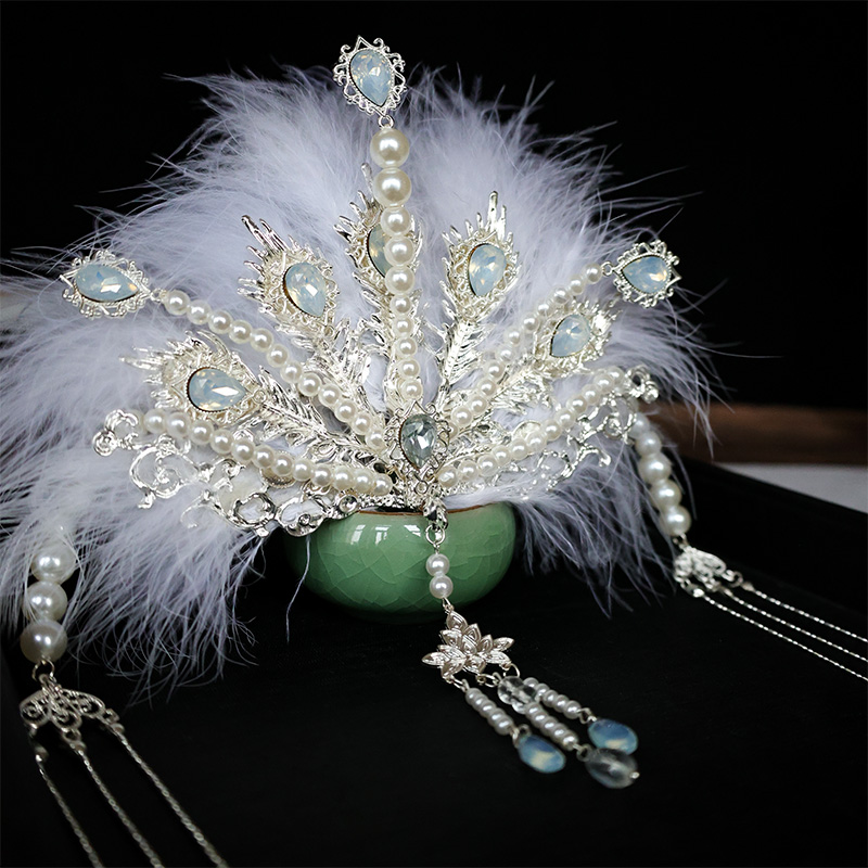 嫦娥羽毛发饰女儿国同款古风凤凰流苏中国风发冠仙气清冷感发饰
