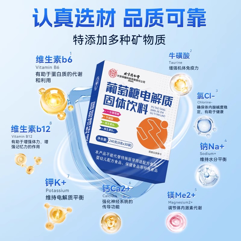 北京同仁堂葡萄糖电解质粉冲剂运动健身补水饮料饮品补充能量水分