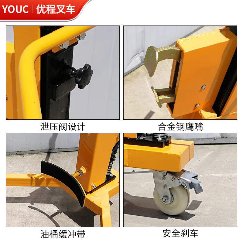 直角液压油桶搬运车圆桶铁桶塑料桶两用升高车多向走油桶车