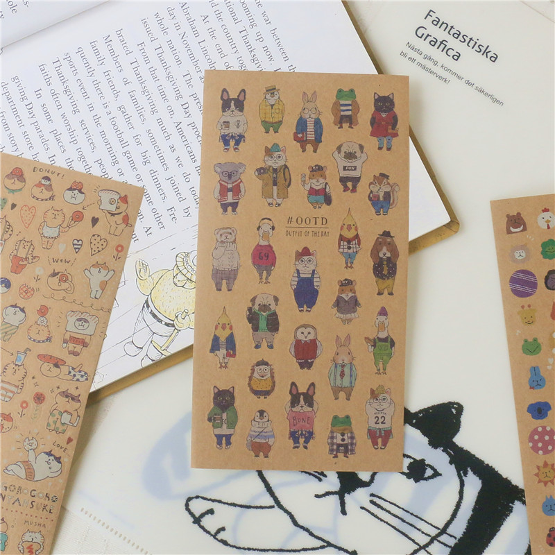 猫部杂货 日式复古牛皮纸猫咪贴纸卡通手帐笔记包装袋DIY装饰贴画