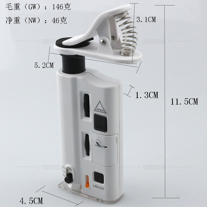 楚达卡扣式手机放大镜珠宝鉴定显微镜 100倍调焦 led/UV灯 透明罩