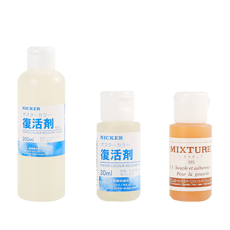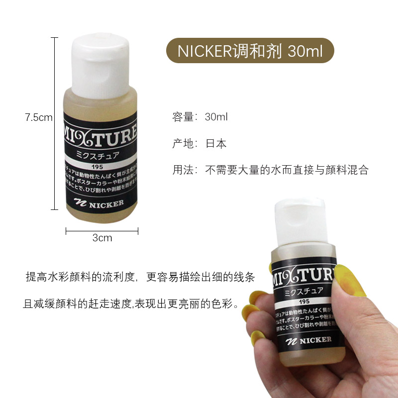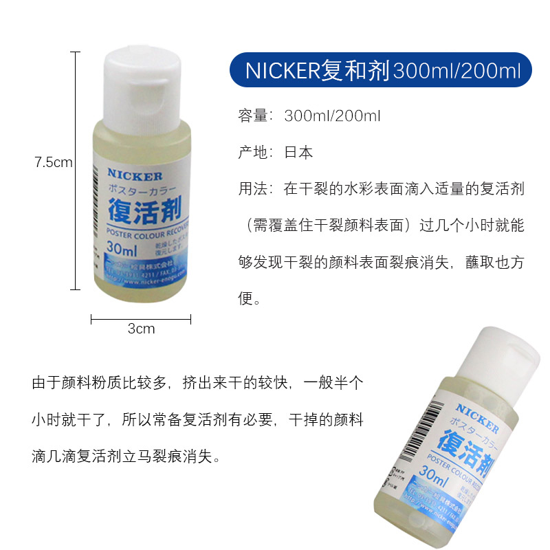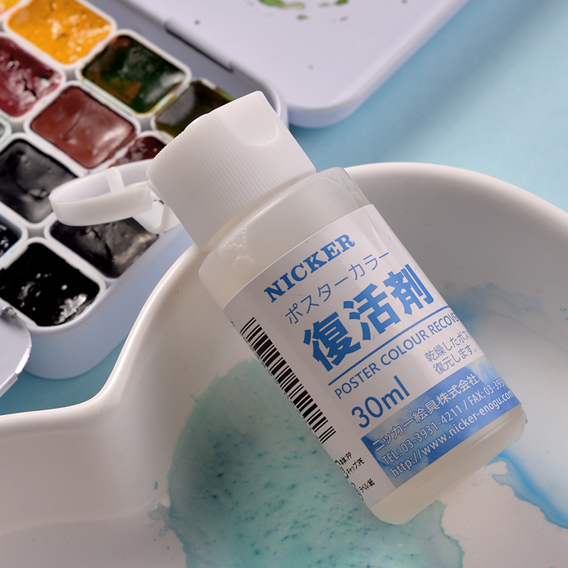 日本进口NICKER颜料复活剂霓嘉postercolor不透明水彩调和液颜料画用美术生专用绘画工具水粉媒介恢复软化剂