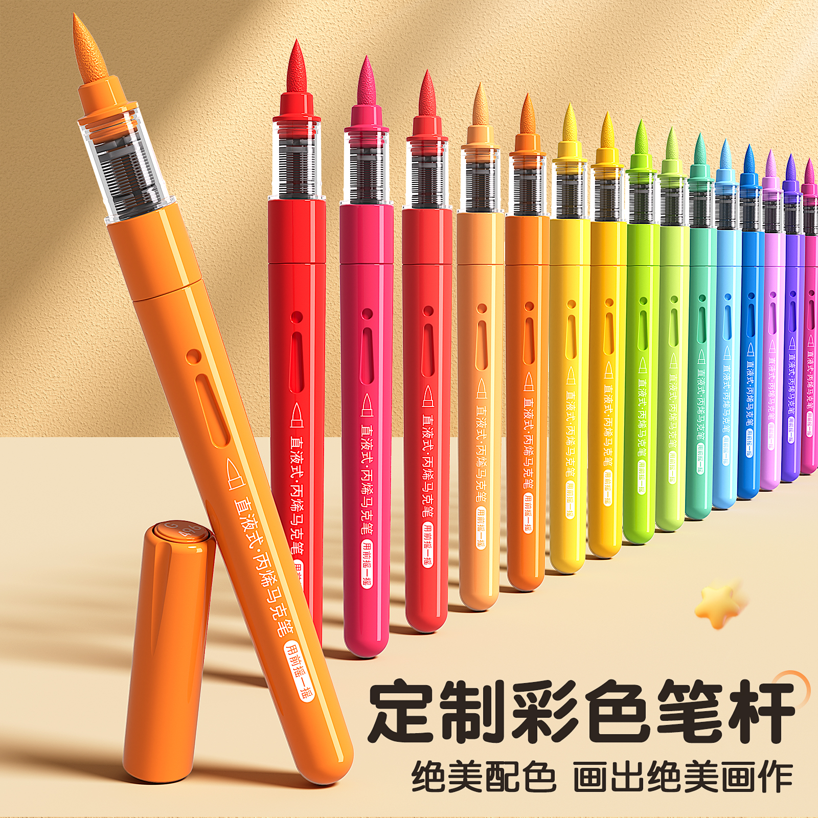 直液式丙烯马克笔软头水彩笔小学生美术专用48色儿童可水洗无毒幼儿园不透色绘画画笔芯高颜值彩色笔套装24色