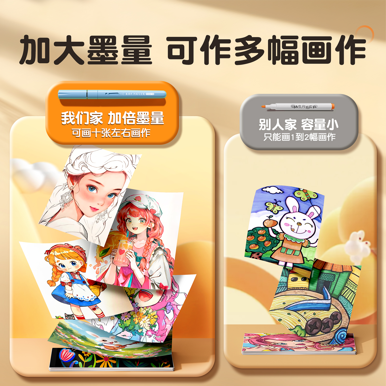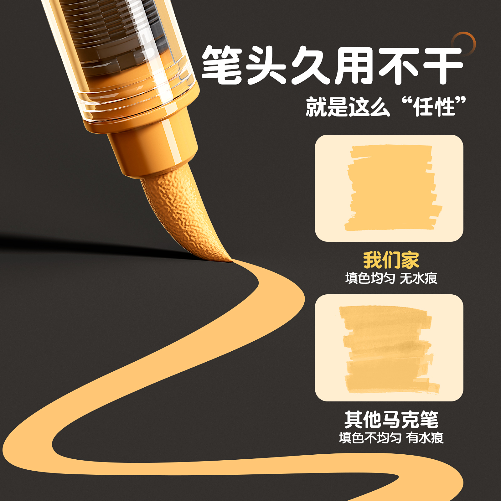 直液式丙烯马克笔48色儿童美术专用小学生用马克笔diy可叠色软头丙烯笔可水洗安全水彩笔咕卡笔24色36画画笔