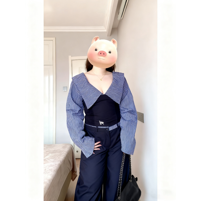 小套装一字肩条纹拼接衬衫上衣大码开春高腰阔腿裤两件套韩系穿搭