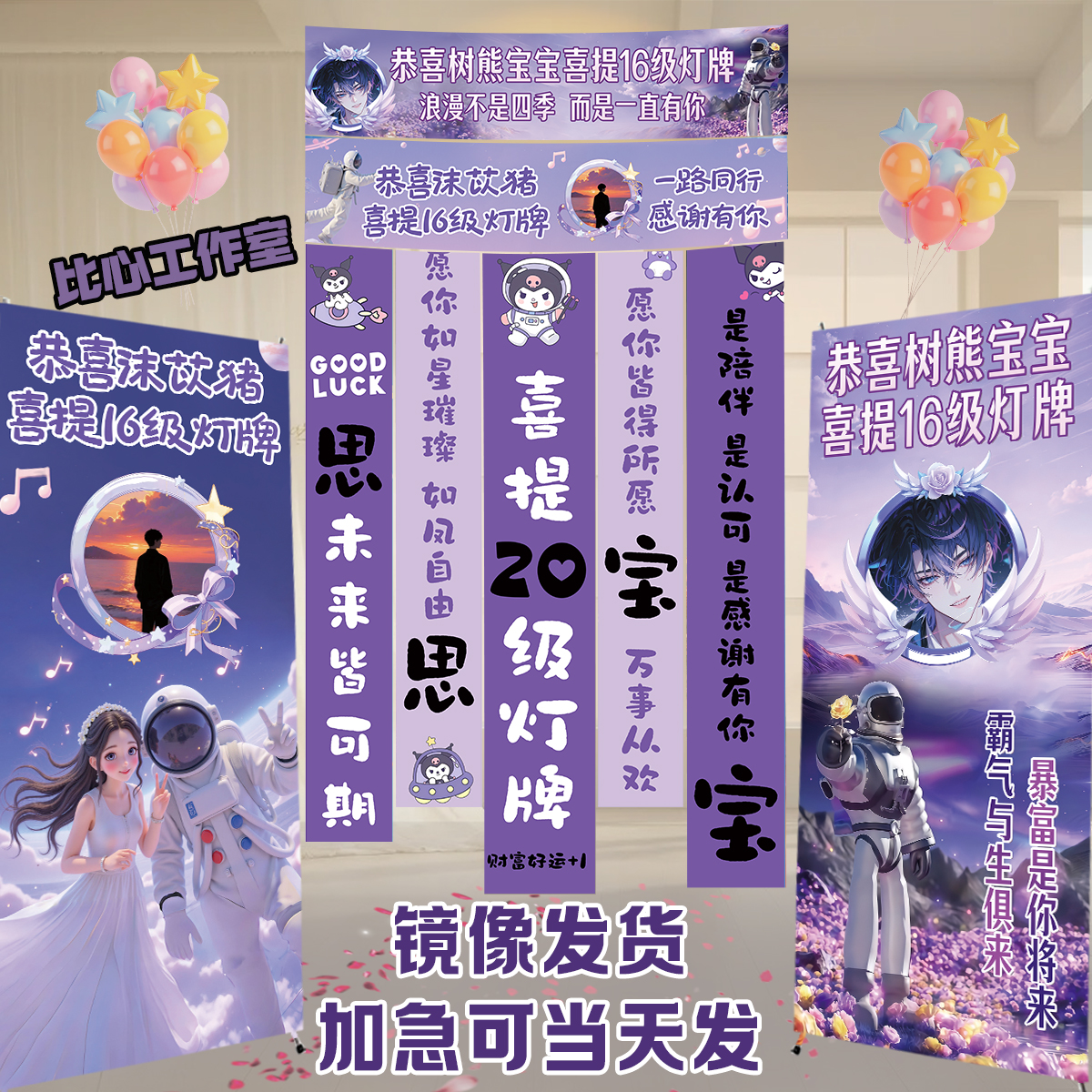 直播间横幅订制16级灯牌仪式感谢大哥升级海报订做人形立牌易拉宝