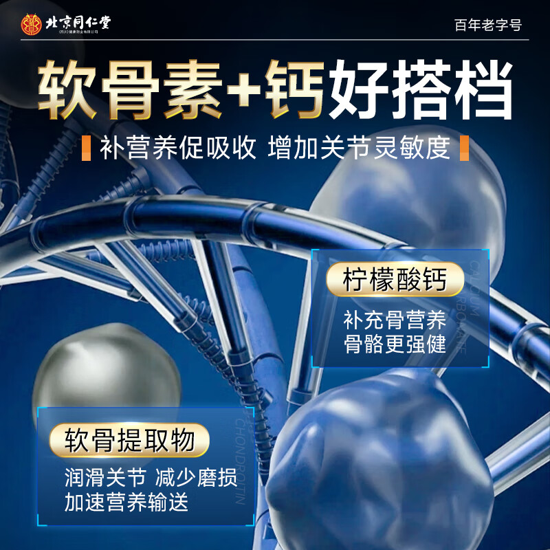 北京同仁堂氨糖软骨素钙片中老年护关节疼痛补钙安糖官方旗舰店