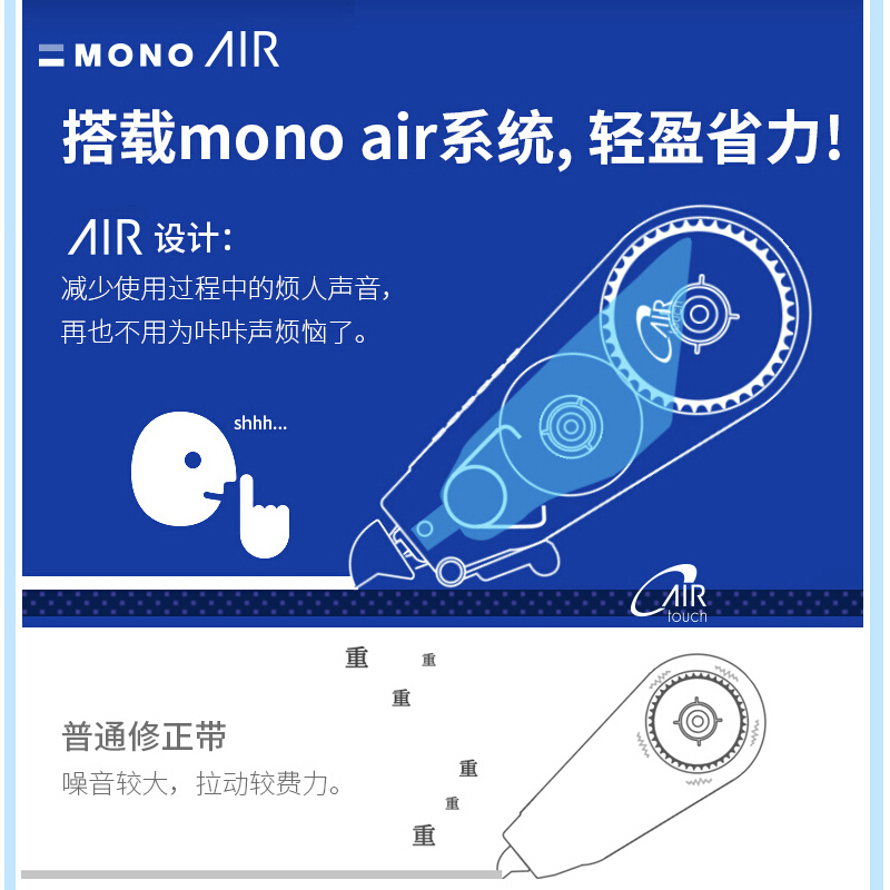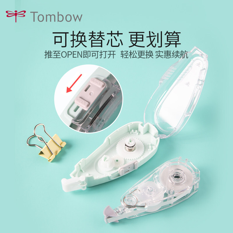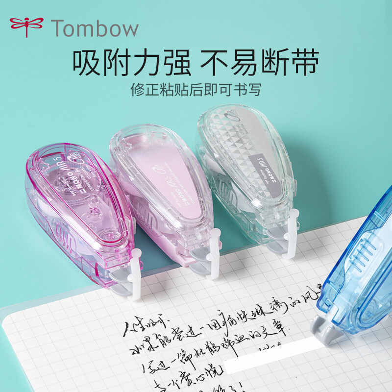 日本Tombow蜻蜓修正带MONO静音Air款CT-CAX5C透明可爱轻巧多支装涂改带可换替芯大容量10m不易断带改正带盒装
