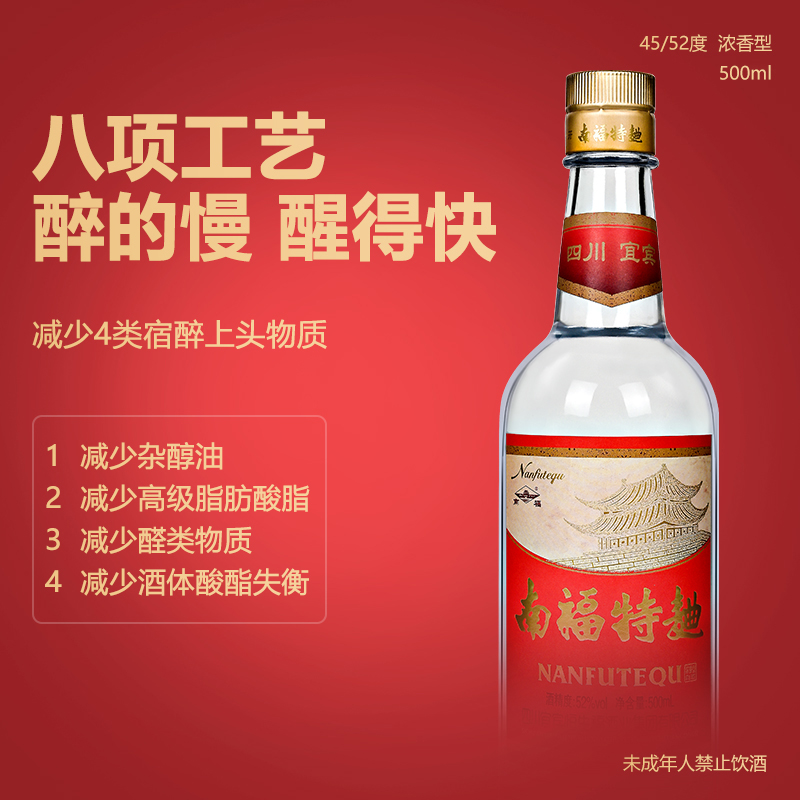 南福光瓶大特曲白酒45/52度500mL纯粮浓香白酒纯粮大曲固态法酿造