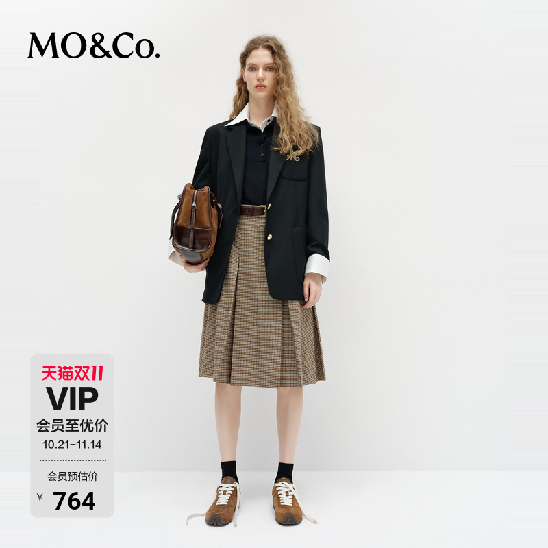 MOCO半身裙含亚麻格纹附腰带可露丽穿搭摩安珂MBE1SKTT20