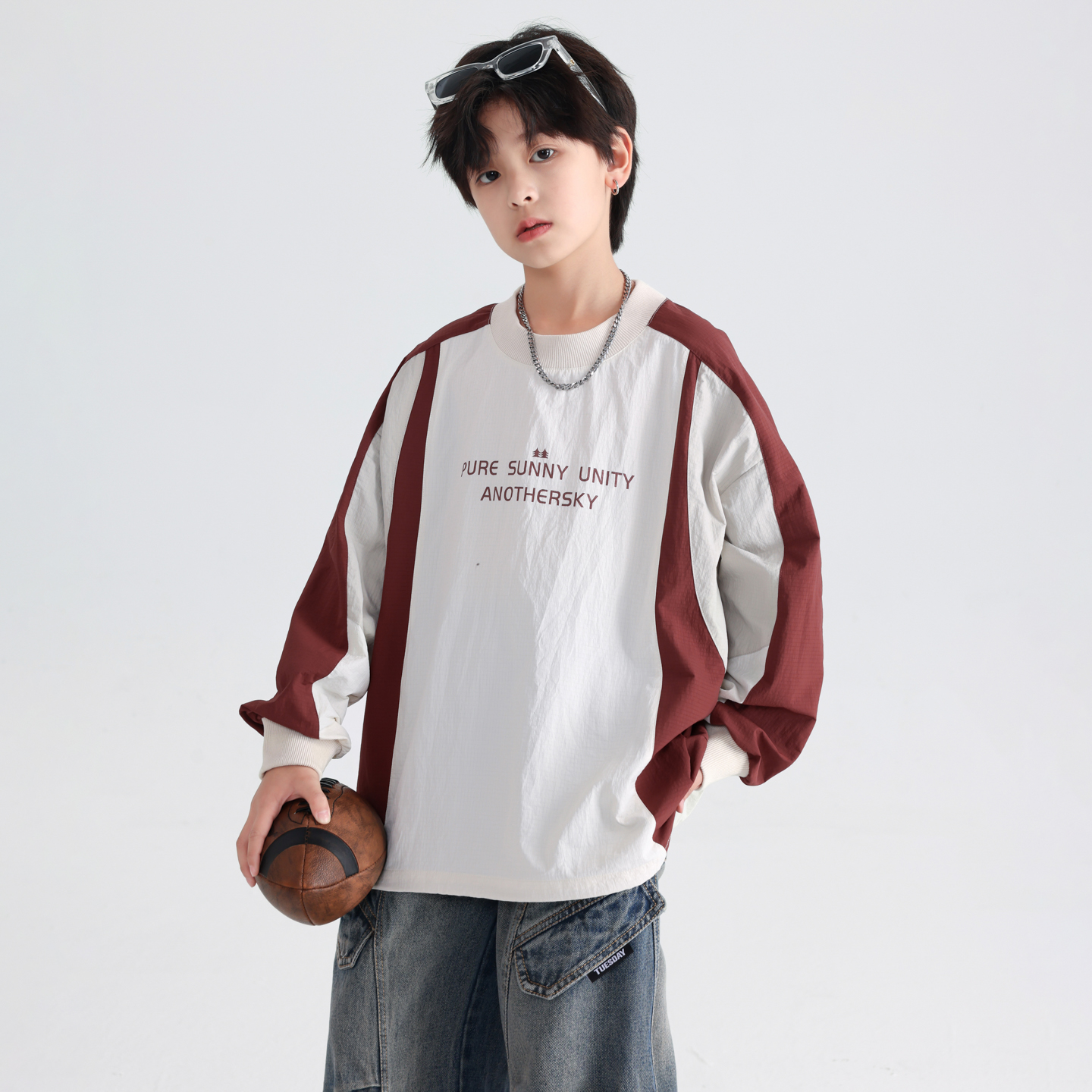 男童秋装韩范撞色运动长袖T恤2025新款青少年儿童户外宽松薄上衣