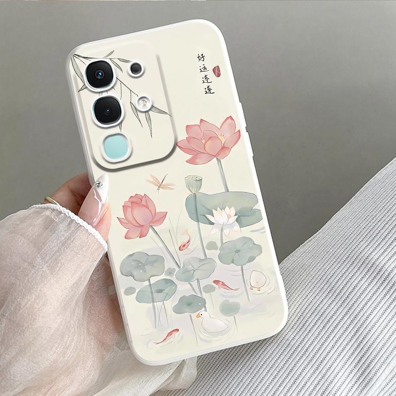 适用国风荷花iqooz10x手机壳iqoo z10x中式防摔全包软胶套国潮男
