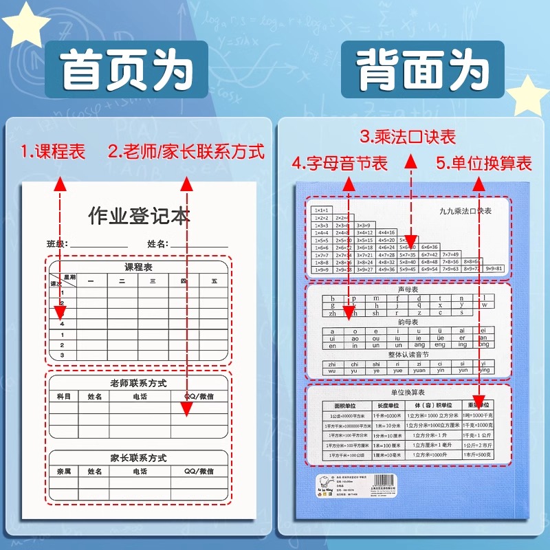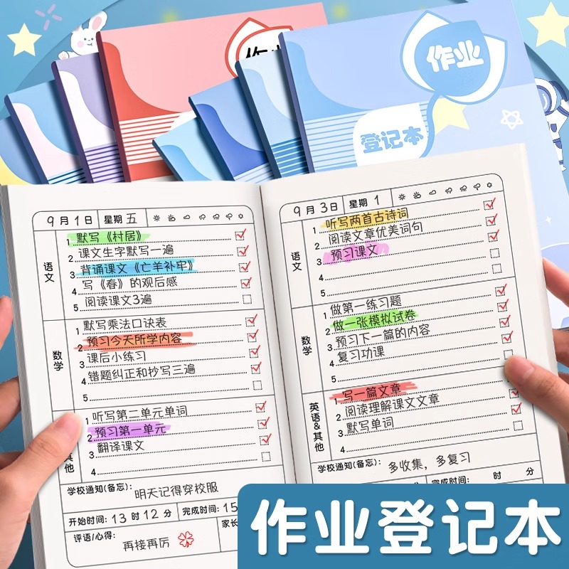 家庭作业登记本小学生一年级二三年级用记课堂抄作业本记录本神器记事可爱小本子笔记本回家抄写家校联系