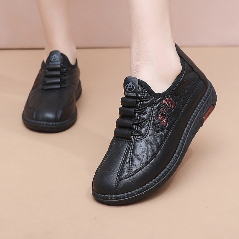 牛筋底妈妈鞋真皮防滑软底休闲中老年单鞋舒适蝴蝶结中年春秋皮鞋
