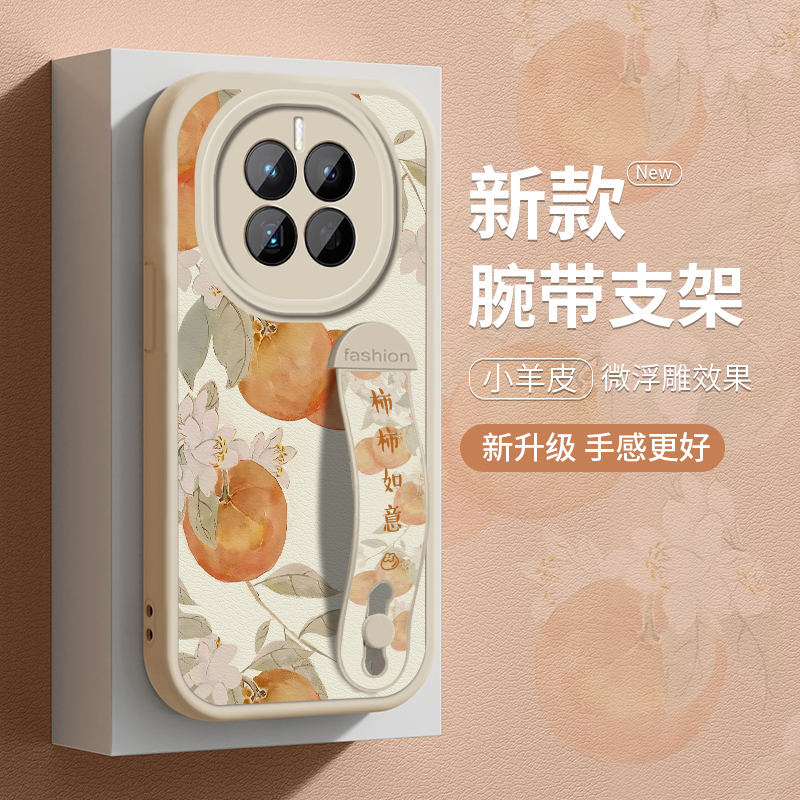 柿柿如意适用华为mate50手机壳mate50pro小羊皮mate50e全包mt50防摔mete50新款por女款腕带支架高级保护软套