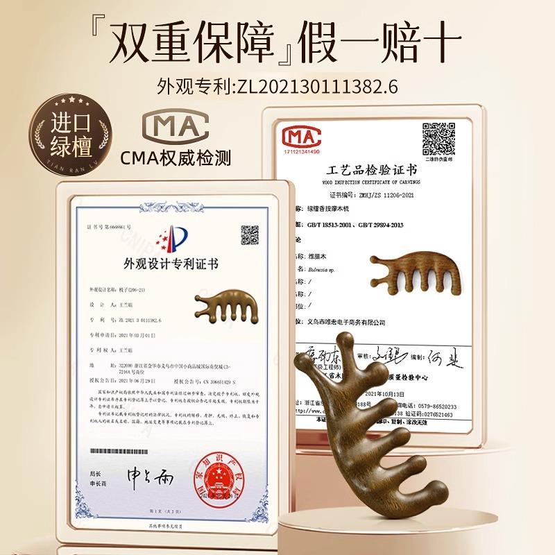 正品绿檀木面部按摩梳子头部头皮经络梳头疗经络疏通神器提拉木头