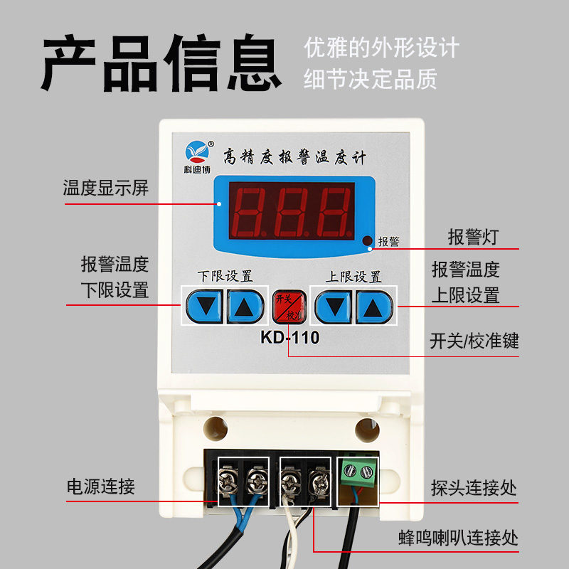 大声温度计带报警上下限感应高温低温远程带探头警报机房养殖大棚