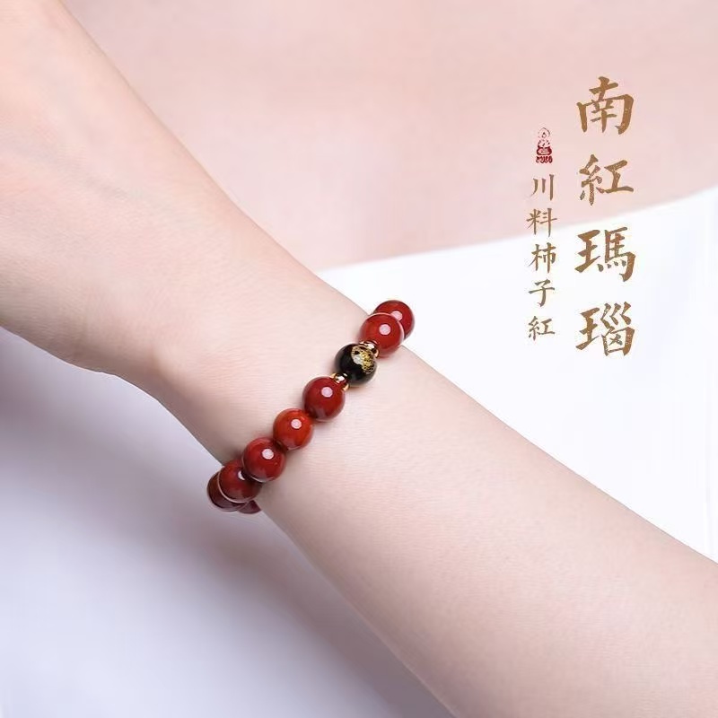 南红男女川料柿子红玛瑙本命年手链转运水晶礼物