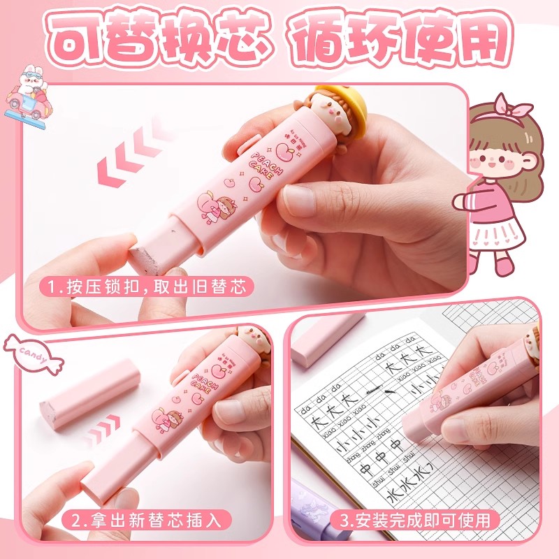 推拉橡皮擦小学生无屑学生专用擦字成条不留痕儿童创意卡通可爱擦的干净幼儿园一二三年级推动式安全按动橡皮