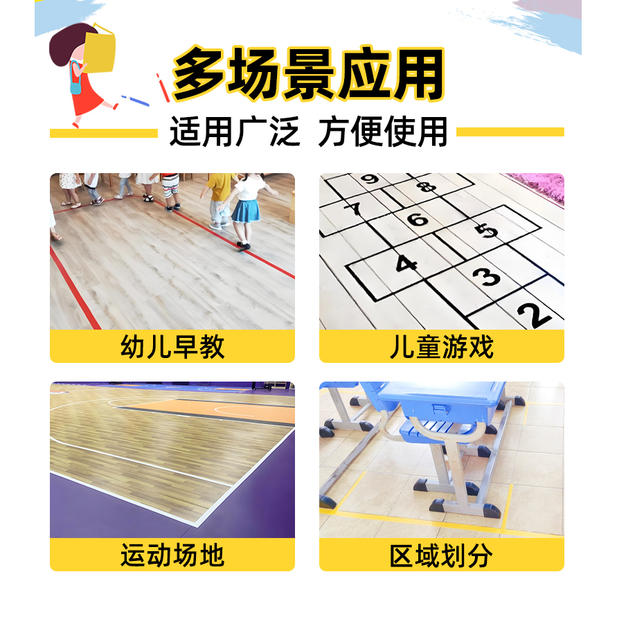 蒙氏走线胶带无痕地板地贴贴线早教中心幼儿园走线蒙特梭利彩色胶布不留残胶无胶防水耐磨教室课桌警示贴纸