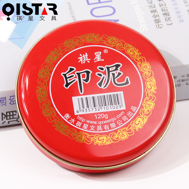 祺星印泥老式书画朱红银行印鉴盖章红色圆形铁盒印台印尼快干财务按手印指纹泥巴状拇指按手印小印泥印泥泥状