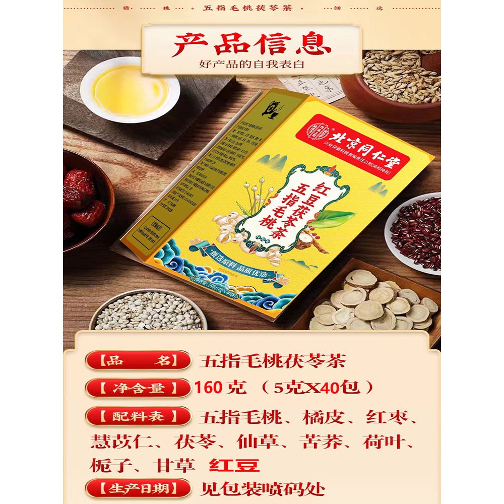 红豆五指毛桃茯苓茶无糖调理脾胃水肿祛湿茶去体内湿气