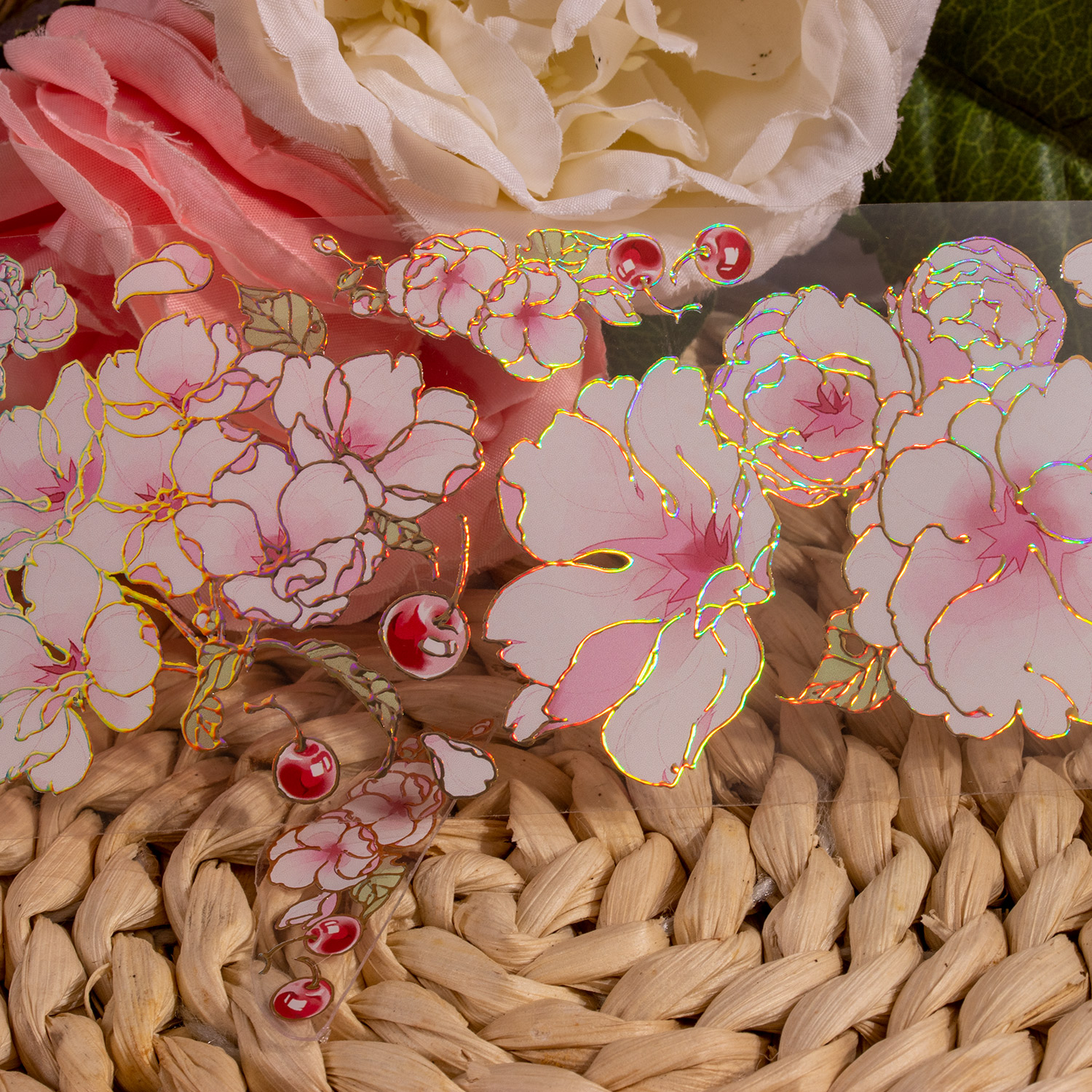 手账胶带造景坠花邪PET镭射金浮雕烫金和纸卉手帐DIY素材贴纸分装