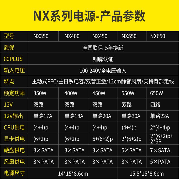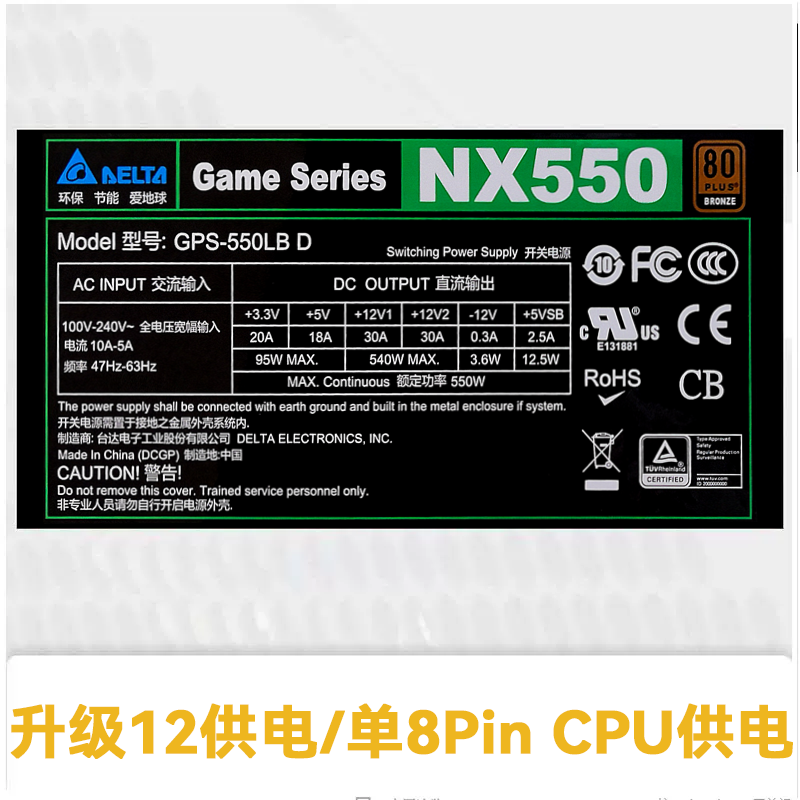 台达NX550额定550W铜牌主动式游戏电竞台式机电脑电源支持RTX4060