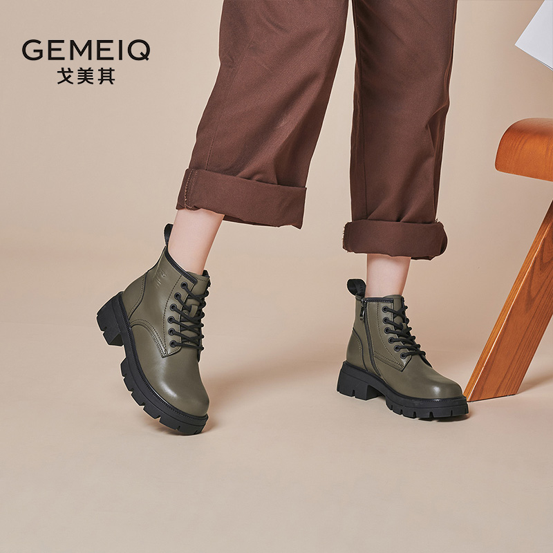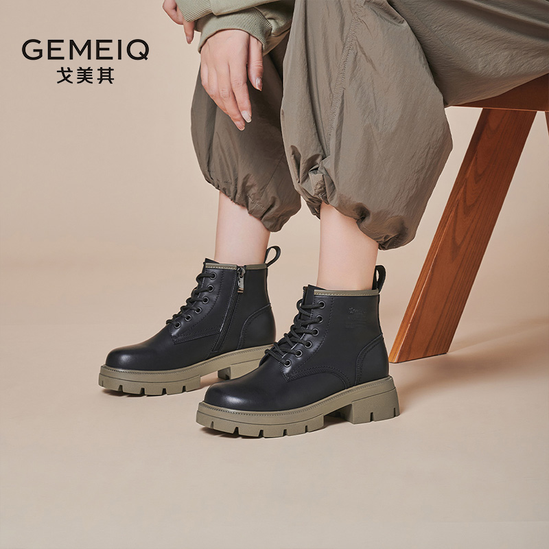 戈美其厚底真皮六孔马丁靴女2025冬季新款复古学院风短靴靴子女鞋