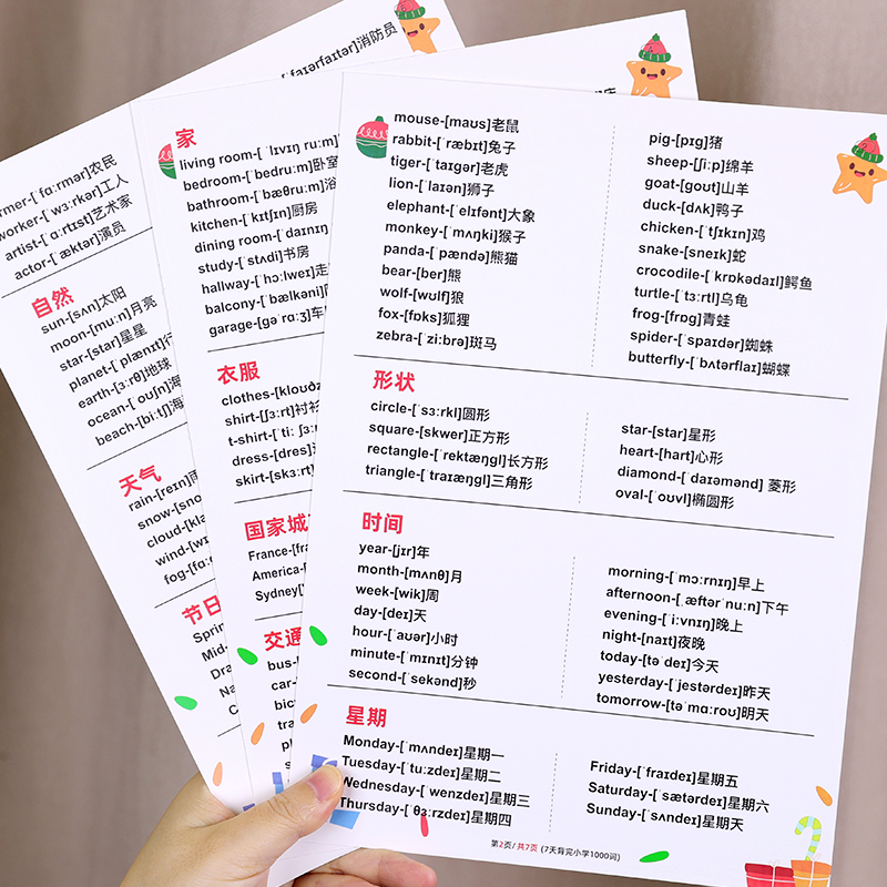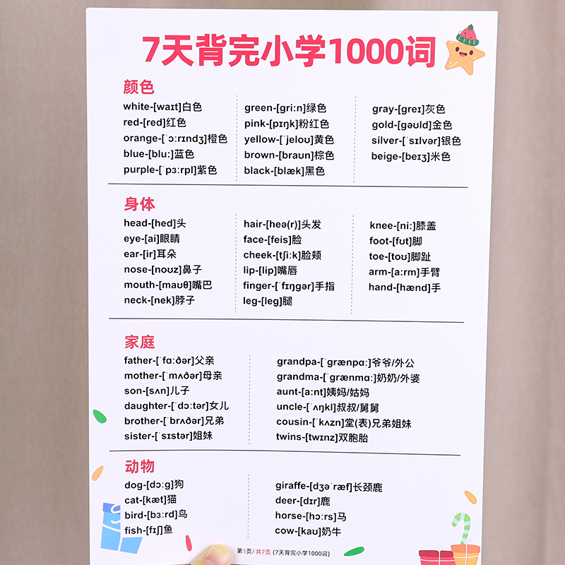 小学生英语1000单词词汇语法短句知识点总结大全背诵学习卡片神器
