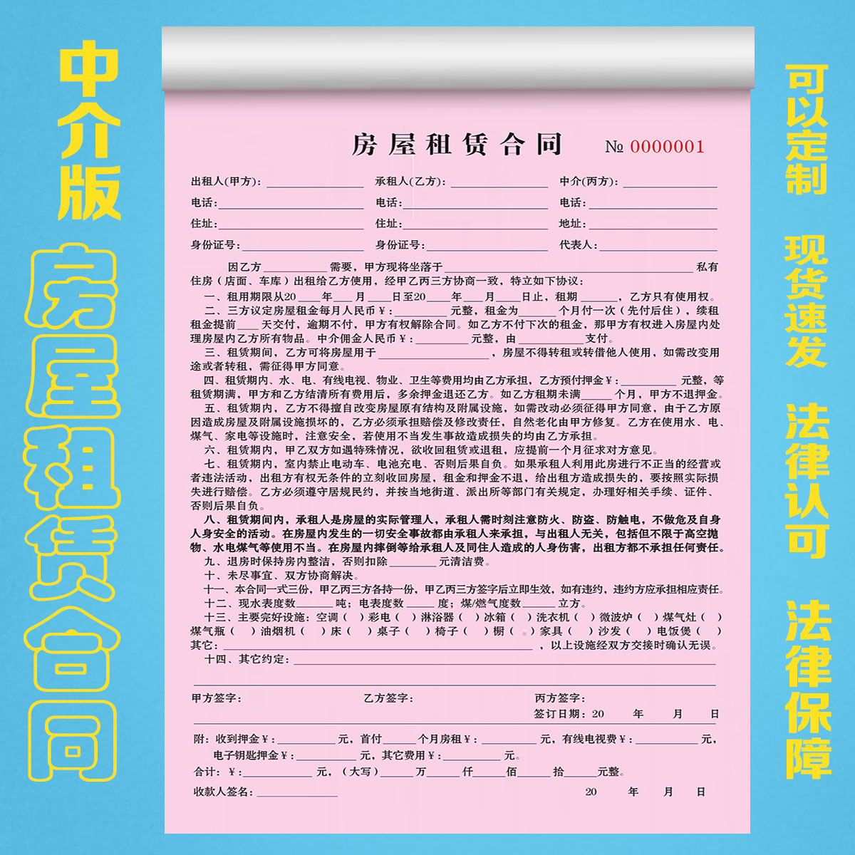 房屋租合同新版法律认可出租房商铺厂房车库房产二三联租赁合同书