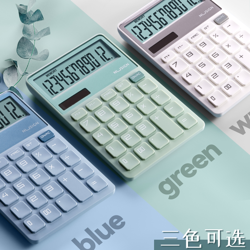 得力纽赛便携计算器迷你太阳能办公专用会计12位数显宽屏双电源太阳能时尚计算机塑胶按键轻薄女学生用抹苔绿
